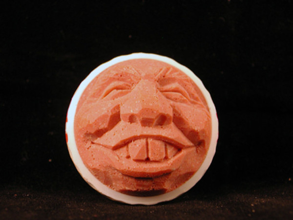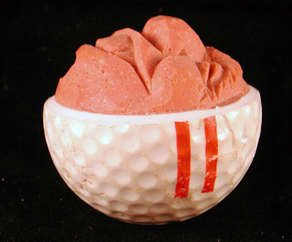 Harold removed half the shell of the golf ball and carved this face into its core.