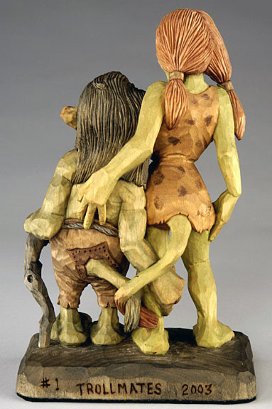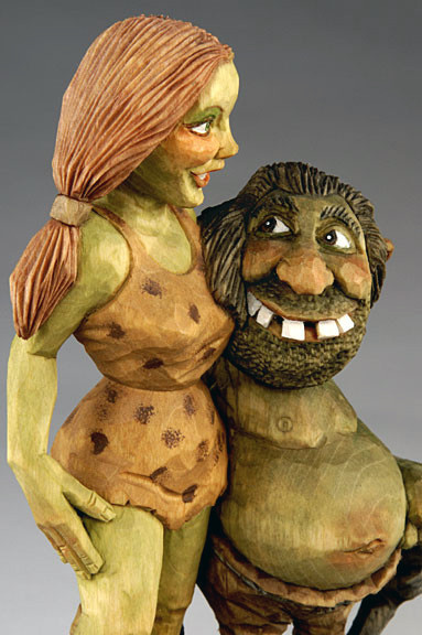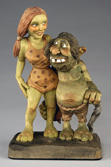 Harold designed and carved this piece and his wife, Elaine painted it for an auction to raise money for the Caricature Carvers of America club. It was carved from a solid block of wood.