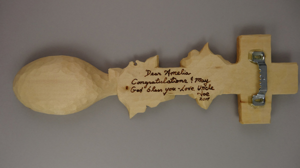 This was carved from a rough out in 2014 as a gift to my God daughter, Amelia for her Communion.