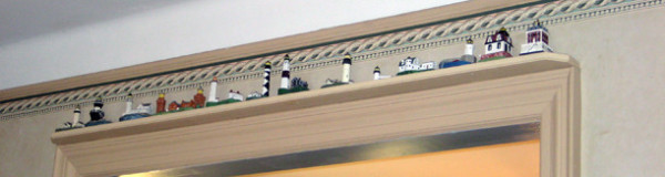 My dad needed a shelf to display his light house collection in the living room, but needed it to blend into the door way molding. Pine wood was used.