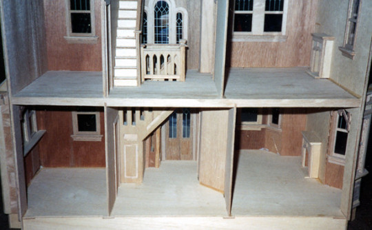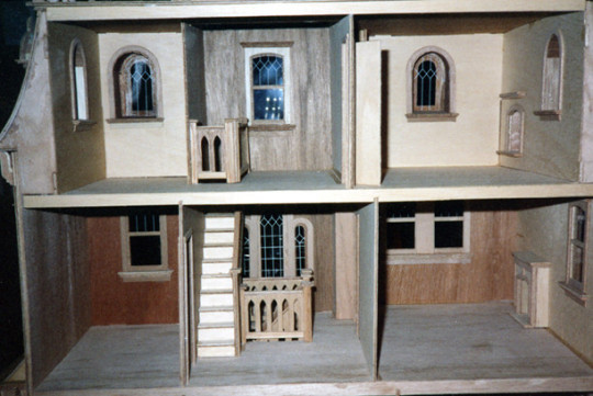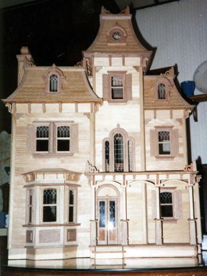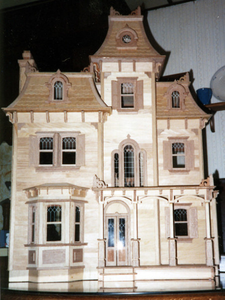 This project was built from a kit. It took over 30 hours to build and it stands at an impressive four feet tall! If you’re not familiar with the dollhouse hobby, you can decorate these houses with everything from wallpaper to working electrical lights.