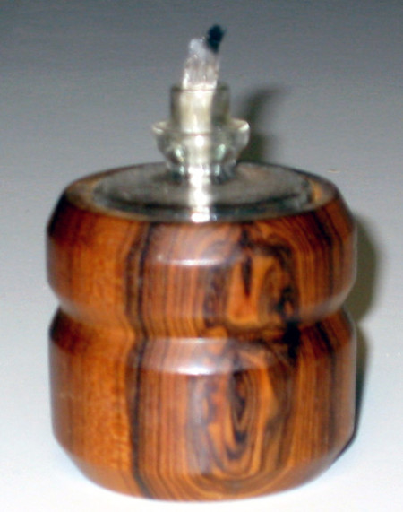 Designed and woodturned the glass oil lamp holder out of bocote wood. Sorry this is the best picture I have. If I make another one, I'll replace the pic.