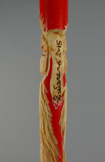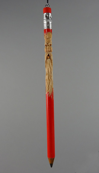 Used a basswood pencil purchased from an online woodcarving supplier.  Used a carving knife, micro chisels and gouges. Created in 2015