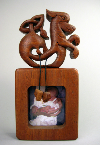 During my wifes pregnancy I decided to carve this for our child. On October 30, 2005 while I was doing the finish sanding my wife went into labor. According to Glenda's book the dog has a great symbolic significance in celtic folklore. They were associated with healing and protection and would invariably accompany their masters into battle or on fantastic journeys.