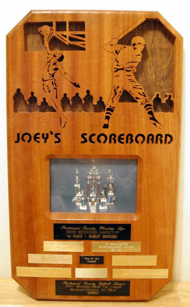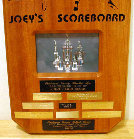 Designed and created this plaque to consolidate my brother-in laws trophies.