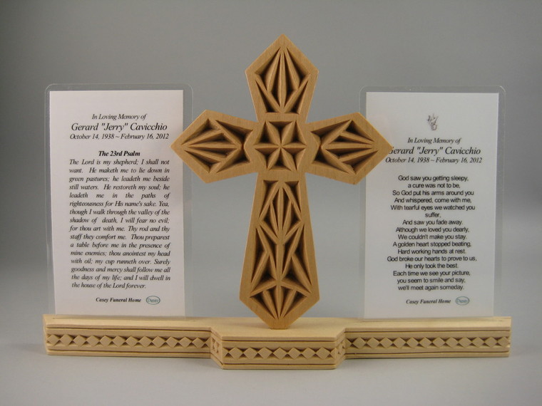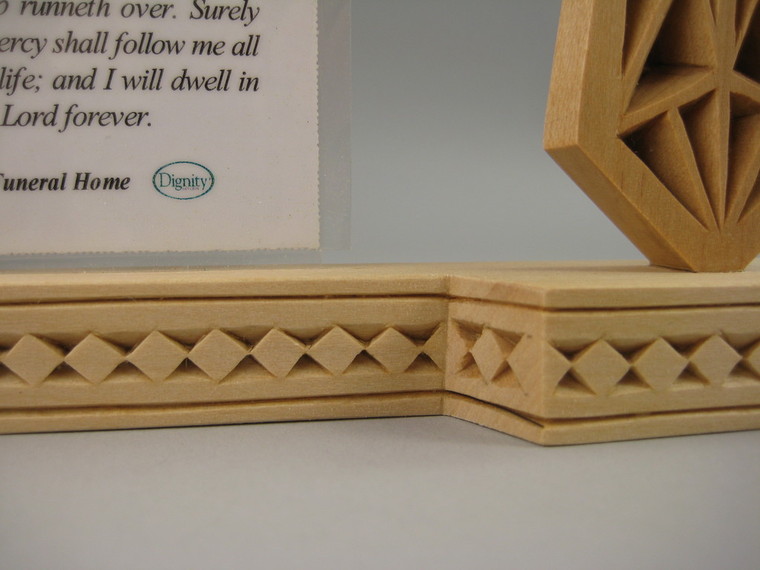 This was carved as an Easter gift for my Aunt in memory of my Uncle. The cross design was found in a carving magazine, but the rest of the piece was designed by me.