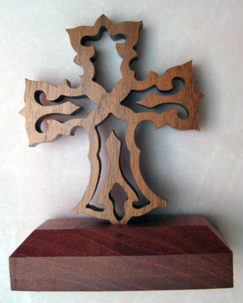 Walnut wood was used for the cross and mahogany for the base.
