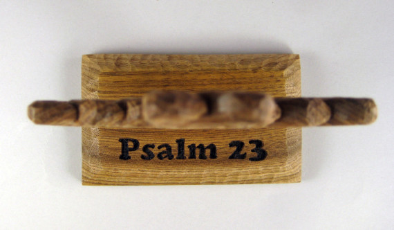 Carved Psalm 23 into the base and then woodburned each letter/number.