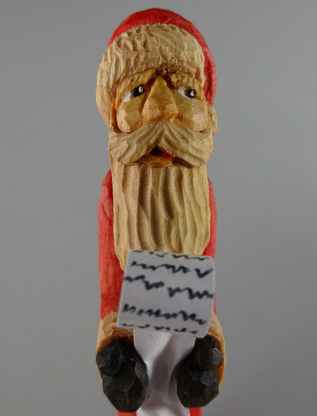 This carving was based on Tom Hindes "Easy to Carve Santa" design in Woodcarving Illustrated Whittleing Volume III Magazine.