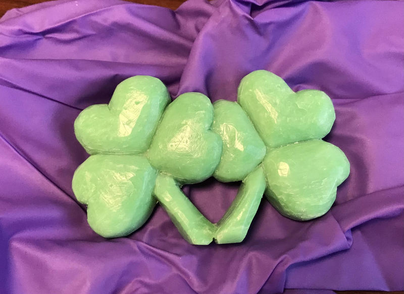 Of course, I had to use Irish Spring soap to carve a four-leaf clover! As beautiful as it is to wash with, it turned out to be a pain to carve. I decided to work with it anyway-making small cuts and using a sharp carving knife to get the job done.