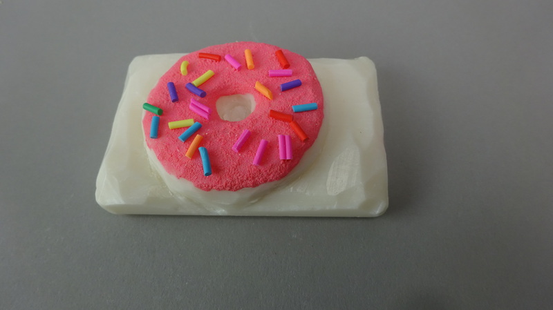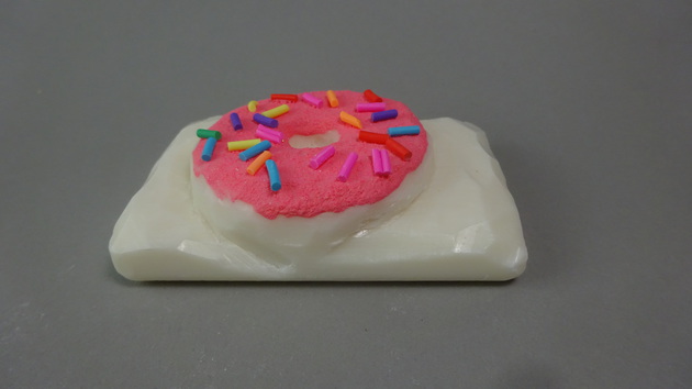 Made these yummy-looking donuts out of a bar of Ivory soap! The frosting is a mix of Elmers glue and acrylic paint, and finished it off with my favorite clay sprinkles from Amazon.