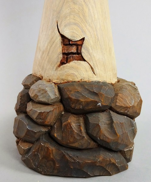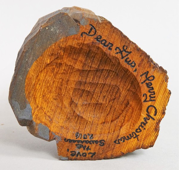 Inspired from a Wood Carving Illustrated Magazine article by Bob Hershey. Carved from cottonwood bark. Completed in Decemeber 2016.