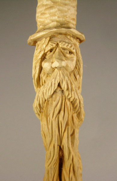 I designed and carved this guy from a 1-Inch X 1-Inch X 8-Inch piece of basswood.